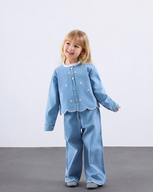 Nakış detaylı 3lü denim takım -